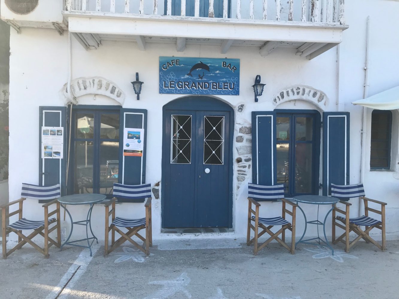 Plus de trente ans ont passé et pourtant, à Amorgos, personne n’a oublié le Grand Bleu. Pendant longtemps, le bar Le Grand Bleu, sur le port de Katapola, diffusait le film tous les soirs. Ce n’est certes plus le cas aujourd’hui mais le lieu reste agréable pour boire un café. De nombreuses affiches sur les murs évoquent le tournage du film. Mentionnons aussi la jolie villa « Le Grand Bleu ». Idéale pour dormir quelques nuits à Amorgos (en plus, les propriétaires sont sympathiques et francophones).