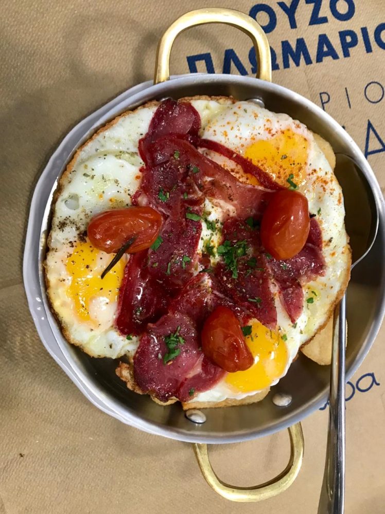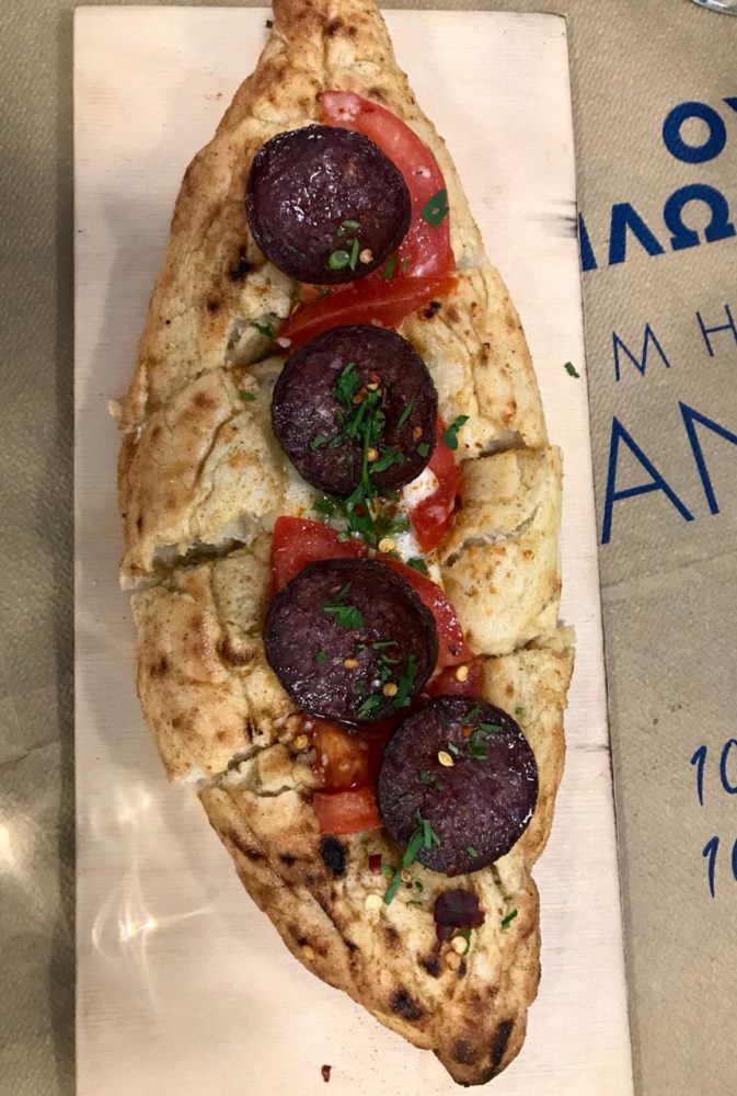 La taverne Ta mezeklikia tis laxanagoras « Miran », ensuite. Nous aimons beaucoup cette cuisine d’Asie mineure. La taverne propose de petites cassolettes à base de charcuterie épicée. On vous conseille notamment le pastourma me avga kai patates. Goûtez aussi au Peïnirli, une spécialité (pâte en forme de navette et farcie au fromage, charcuterie ou viande).