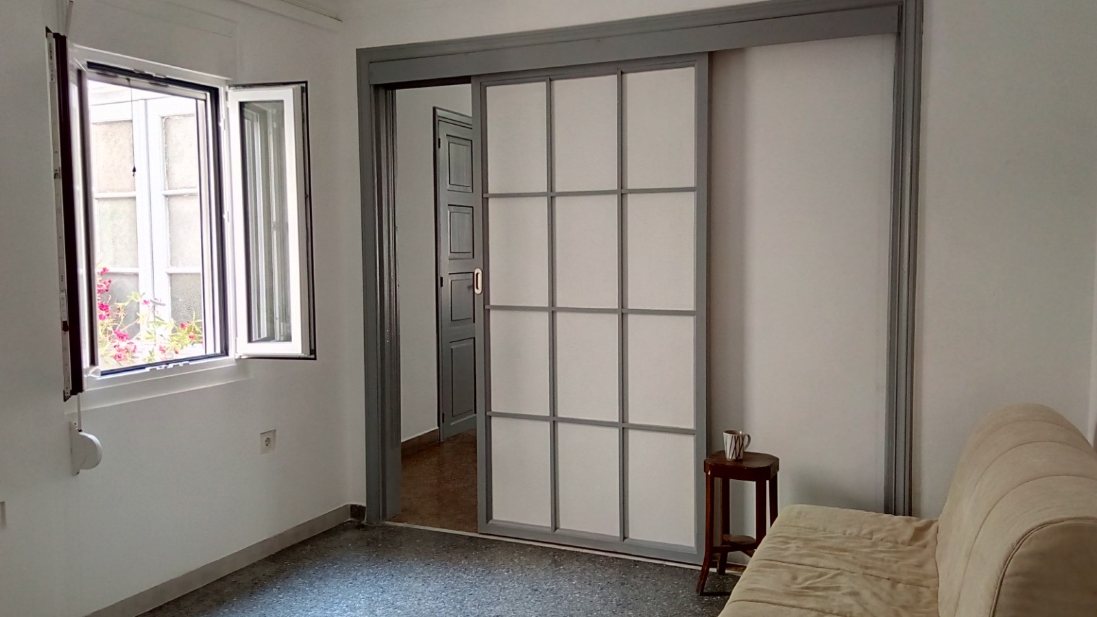 Location d'un grand T2 de 62 m² au centre d'Athènes à 3 minutes à pied du métro Kéramikos. Appartement se situant au premier (et dernier étage) avec une cour intérieure. Lieu très calme car l'immeuble se situe dans une rue piétonne avec tous les commerces à proximité (boulangerie, cafés, restaurants, supermarché…). Appartement entièrement refait à neuf, double vitrage, dressing dans la chambre, cellier. Possibilité de louer en meublé ou non meublé. Loyer CC : 550€