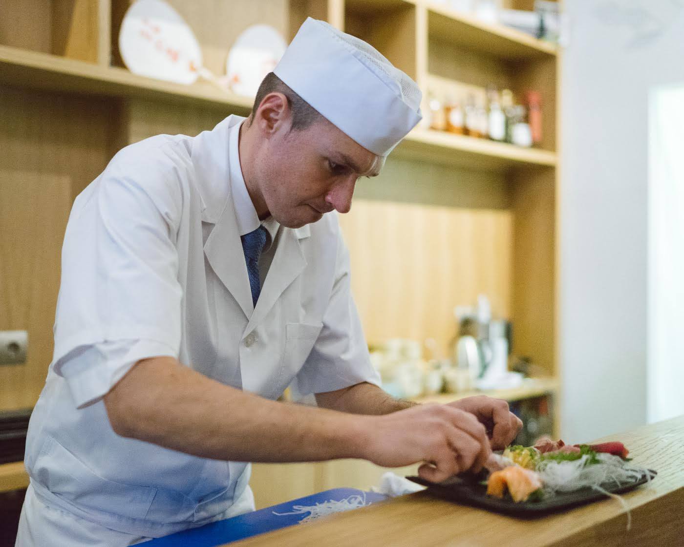 Le chef confectionne les sushis, sashimis, makis et autres délices de poissons crus sous vos yeux. Cette position centrale permet aux clients d’admirer tout l’art de cette cuisine japonaise, la parfaite maîtrise des ingrédients, de la découpe et de la présentation.