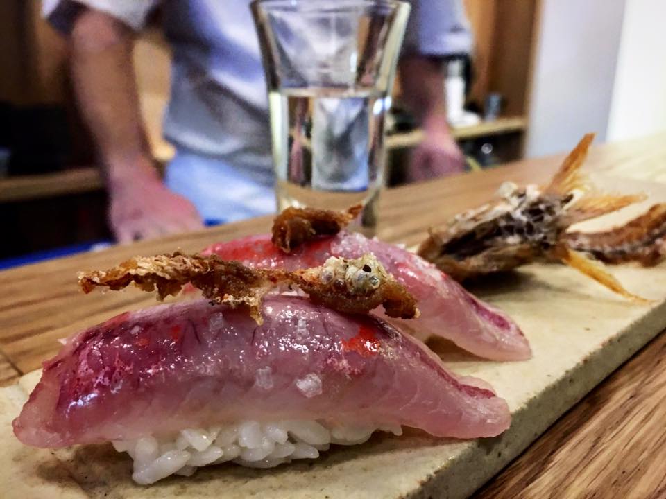 Le choix des poissons (bar, rouget, dorade, saumon, thon, calamar, hareng…) est impressionnant lui aussi. En sashimi, en sushi, avec une feuille d’algues craquante, quelques herbes, légèrement cuit au chalumeau… les techniques sont ainsi maîtrisées à la perfection. Et c’est un délice.